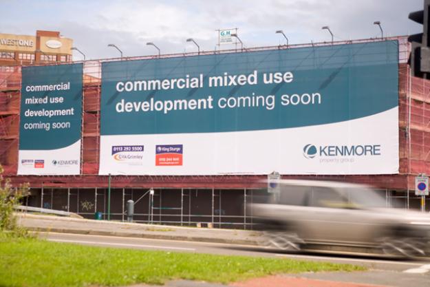 In quảng cáo ngoài trời thường áp dụng cho các công trình xây dựng, xung quanh các cao ốc, văn phòng đang xây dựng nhằm quảng bá dịch vụ của toàn nhà hoặc hotline liên hệ để thuê tòa nhà hoặc văn phòng.